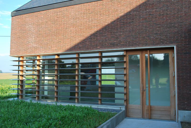 Concrètement, une maison en bois moderne possède une façade très simple. Il s’agit en général d’un plan massif unique, seulement entrecoupé d’éléments discrets comme une porte ou une fenêtre. Le seul élément autorisé, voire indispensable, ce sont, comme nous l’avons évoqué, les grands vitrages ou baies vitrées. Parfois, pour renforcer cette sensation de bloc, le parement de briques est collé sans joint ou réalisé avec un enduit homogène. Le toit d’un modèle de maison moderne est, la plupart du temps, plat. Un élément d’architecture largement répandu dans les constructions modernes, c’est aussi les toitures à larges débordements. Cela amplifie encore la modernité de l’architecture, et comporte des avantages au niveau des économies d’énergie. En été, cela protège des rayonnements du soleil et évite la surchauffe de votre maison, tandis qu’en hiver, les rayons plus bas peuvent aisément venir réchauffer la maison en tapant sur les nombreuses baies vitrées.