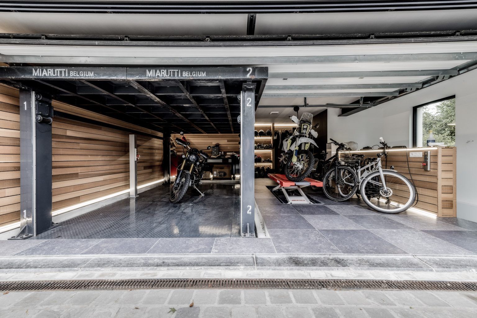 Cette villa au style sobre et chic se situe dans un des quartiers résidentiels les plus prisés de Rhode-Saint-Genèse. Elle se démarque grâce aux choix de son propriétaire, un businessman globe-trotter. En effet, passionné de sports moteurs, il a demandé à Dwelling d’imaginer un garage sur-mesure comprenant, entre autres, un ascenseur pour pouvoir stocker ses voitures et motos au sous-sol.