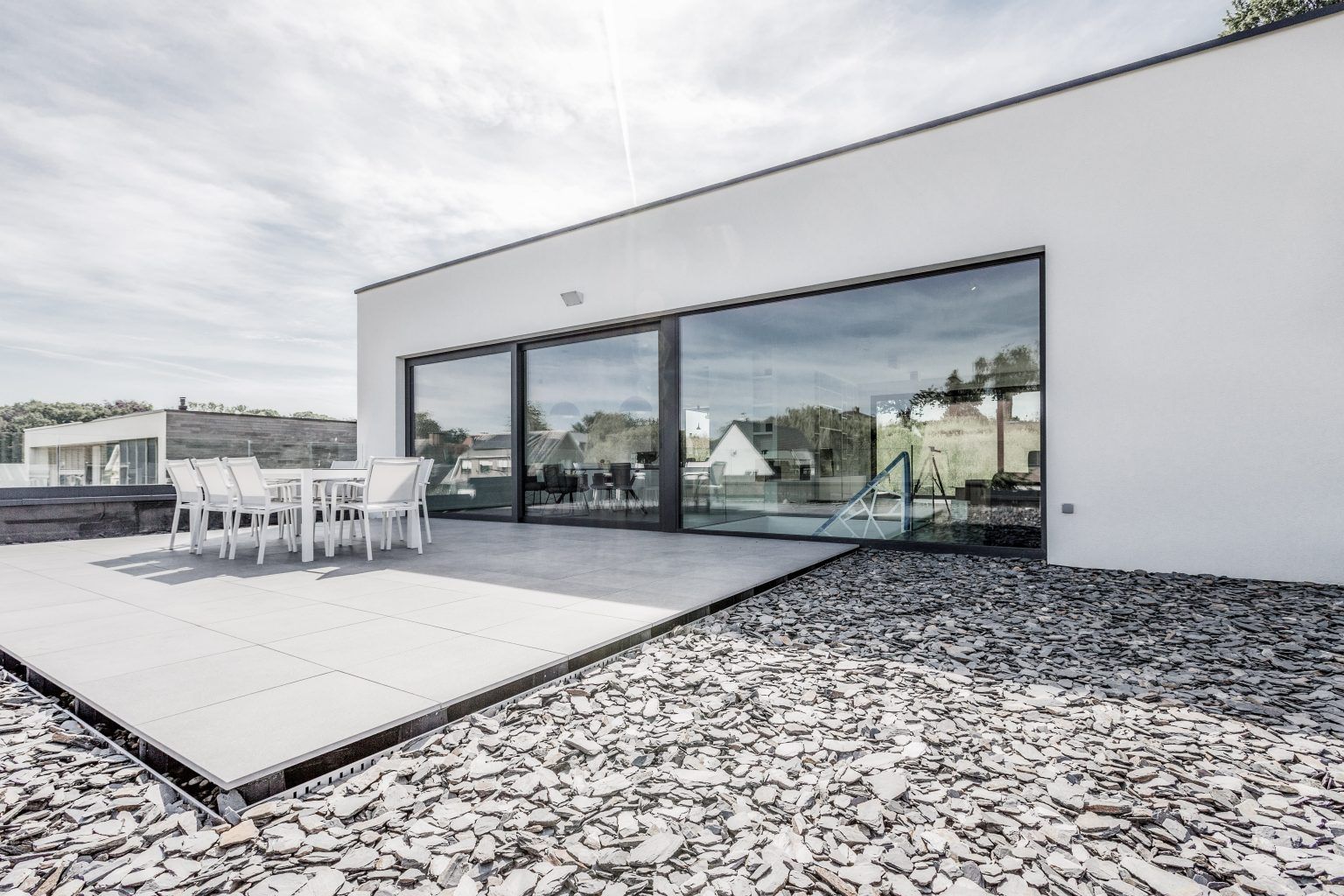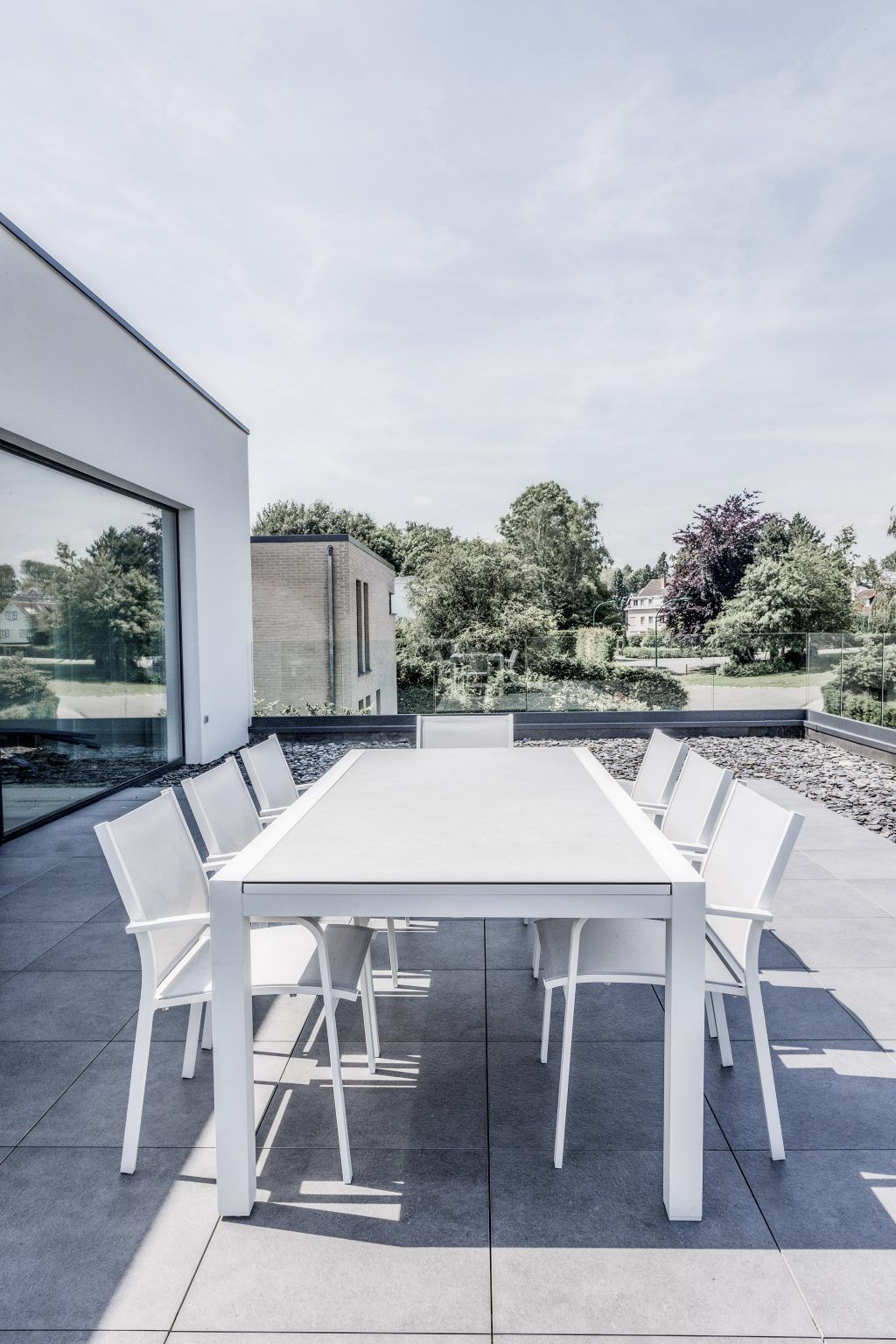 ListingLe point commun entre cette villa de Rhode-Saint-Genèse et New York ? Son rooftop ! C’est la tendance du moment : les bars de Big Apple s’implantent sur les toits, permettant aux visiteurs de profiter de la vue, perchés quelques étages au-dessus de l’animation de la ville. Ici, c’est la forte déclivité du relief qui a permis d’aménager le dernier étage de la maison de plain-pied avec le terrain naturel, à l’arrière. Il accueille la zone de vie, ainsi qu’une terrasse panoramique en façade avant, dominant le quartier à l’image des rooftops new-yorkais. Une deuxième terrasse, partiellement couverte, est aménagée côté jardin.