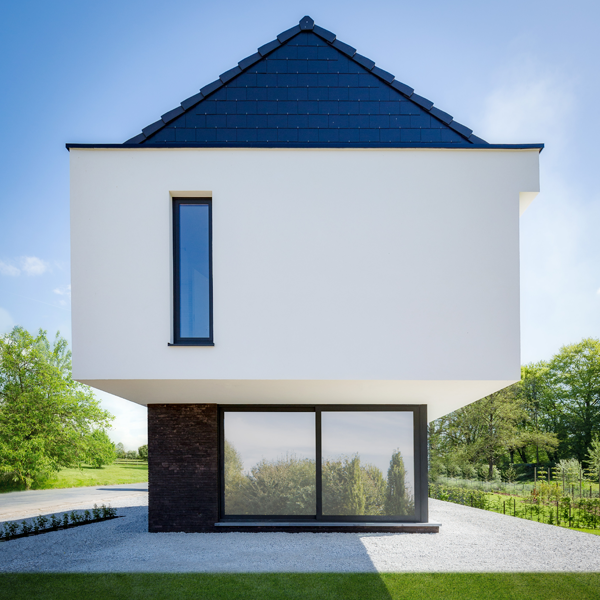 Une maison moderne combine des pans de façade plats et minimalistes à des toitures plates, à deux ou quatre pentes.